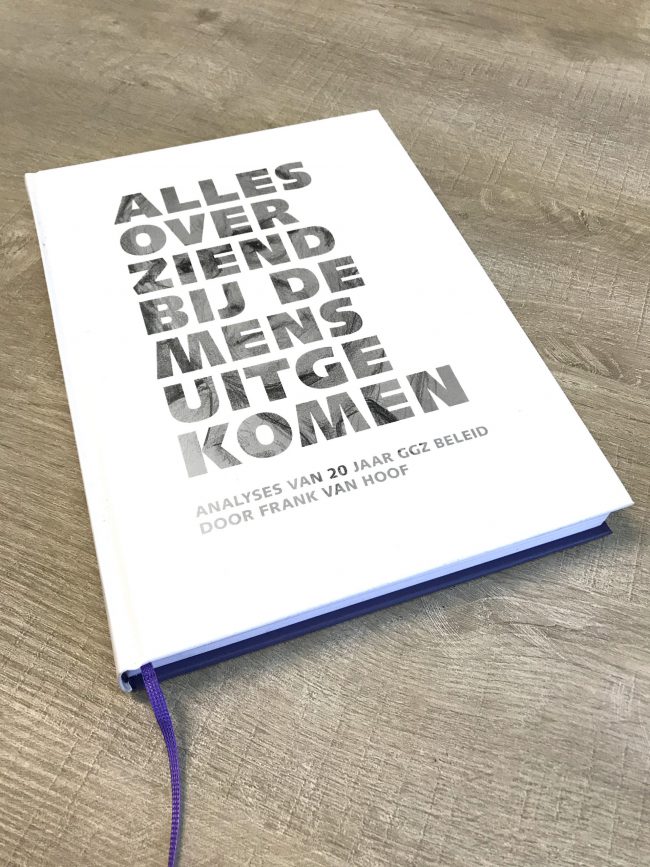 Opdracht: Trimbos Instituut Verzorg de vormgeving van het boek Alles overziend bij de mens uitgekomen. Dit boek is gemaakt ter nagedachtenis aan Frank van Hoof met een aantal belangrijke publicaties van hem. Vormgeving: Nina