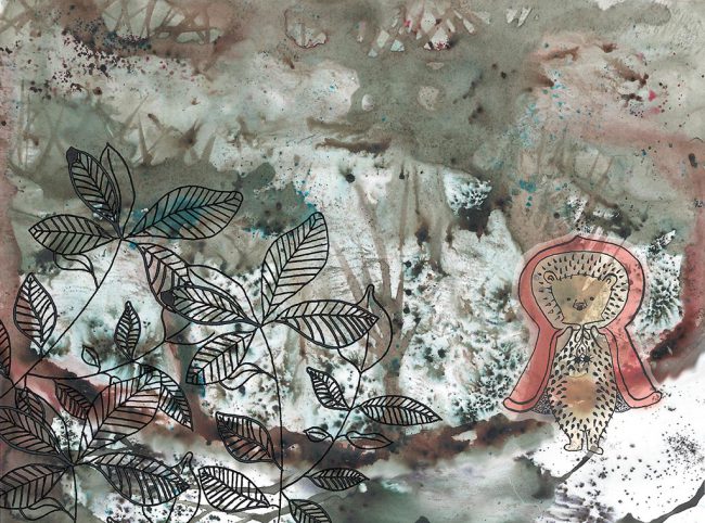 Een vrije opdracht: ontwikkel een illustratie waarbij je vrij bent in materialen en thema. Illustratie: Marlous