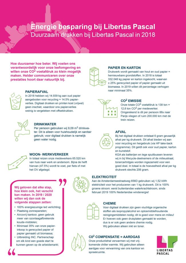 Opdracht: Libertas Pascal Ontwerp een poster die de duurzame werkwijze van drukkerij Libertas Pascal weergeeft. Vormgeving: Nina